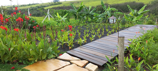 Depois da etapa de reflorestamento, a Fa nos trouxe um novo desafio: encontrar soluções de saneamento apropriadas para sua propriedade, em área rural ligada à uma zona de preservação ambiental e carinhosamente nomeada de “Lugar do Ben” em homenagem ao seu primeiro bebê. No projeto optamos por técnicas apropriadas para o manejo de águas e efluentes, fazendo o tratamento das águas cinzas da residência através do paisagismo. Elaboramos sistemas ligados à wetlands e zonas de raízes para filtrar o efluente produzido na casa e assim devolvê-lo limpo à natureza.